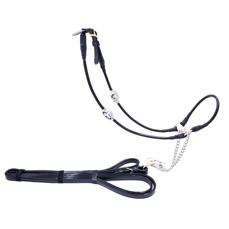 配備龍頭與領(lǐng)繩之牽馬步驟需要牽馬時,應(yīng)于馬匹內(nèi)側(cè)馬頸位置進行,左手把領(lǐng)繩繩尾盤成繩圈,右手握緊領(lǐng)繩鐵環(huán),離開馬頭約20厘米的位置。牽馬前進時,騎師眼睛向前進方向直望,位于馬匹內(nèi)側(cè)馬頸位置,堅定的一步一步向前走。切記不可望向馬匹,否則馬匹則可能停步不前行。若馬匹拒絕前進,不可強拉領(lǐng)繩,應(yīng)用左手領(lǐng)繩繩尾輕輕掃向馬匹腹部,或把馬頭向外側(cè)推動,待馬匹前腿移動時,再牽馬前進。需要牽馬轉(zhuǎn)彎時,切記要向外側(cè)轉(zhuǎn)動...